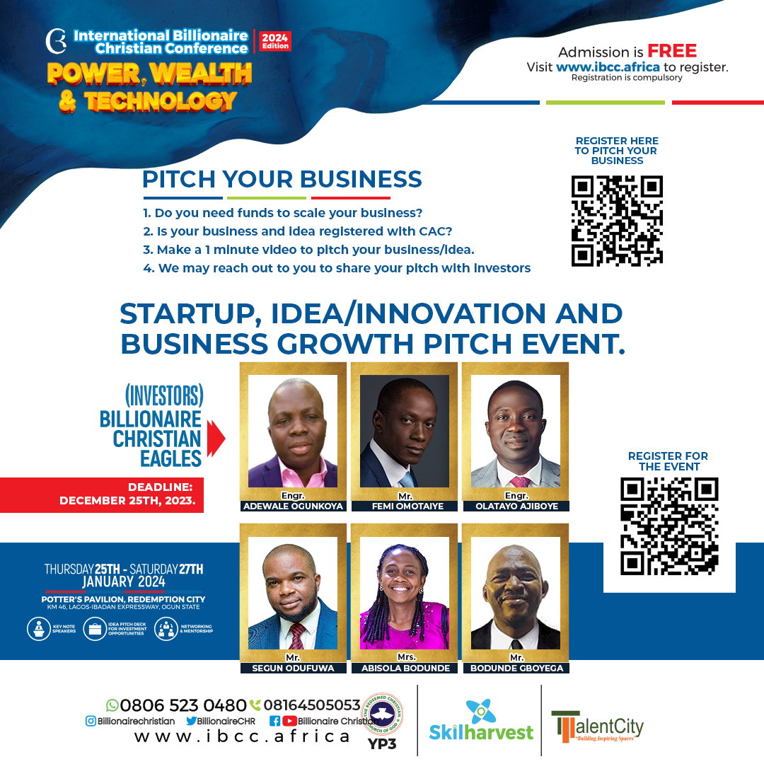 #Business Ahead of 2024 Conferenmce, IBCC Announces Startup Fund, Other Initiatives In a groundbreaking move that echoes the commitment to empower, inspire, and drive positive change, the International Billionaire Christian Conference admin / 2 years Comment (0) (291)